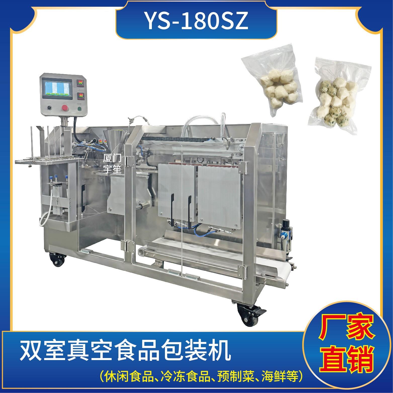 YS-SP180SZ雙室真空食品包裝機(jī)Double-Chamber Vacuum Food Packaging Machine特點(diǎn):1、適用于各種休閑食品、冷凍食品、預(yù)制菜、海鮮等真空包裝,防止產(chǎn)品氧化霉變、腐爛及受潮,有效延長(zhǎng)儲(chǔ)存或保鮮期限。Suitable for vacuum packaging of various snack foods, frozen foods, prepared dishes, seafood, etc. It prevents p…